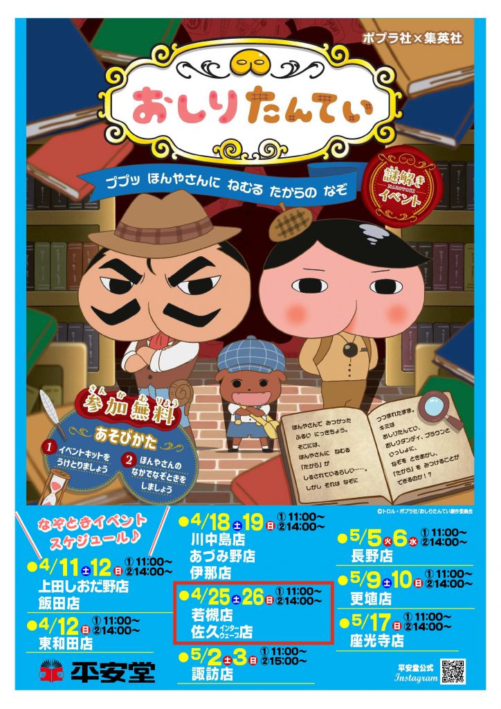 おしりたんてい🍑❣ほんやさんに ねむる たからの なぞ*参加無料*の謎解きイベント