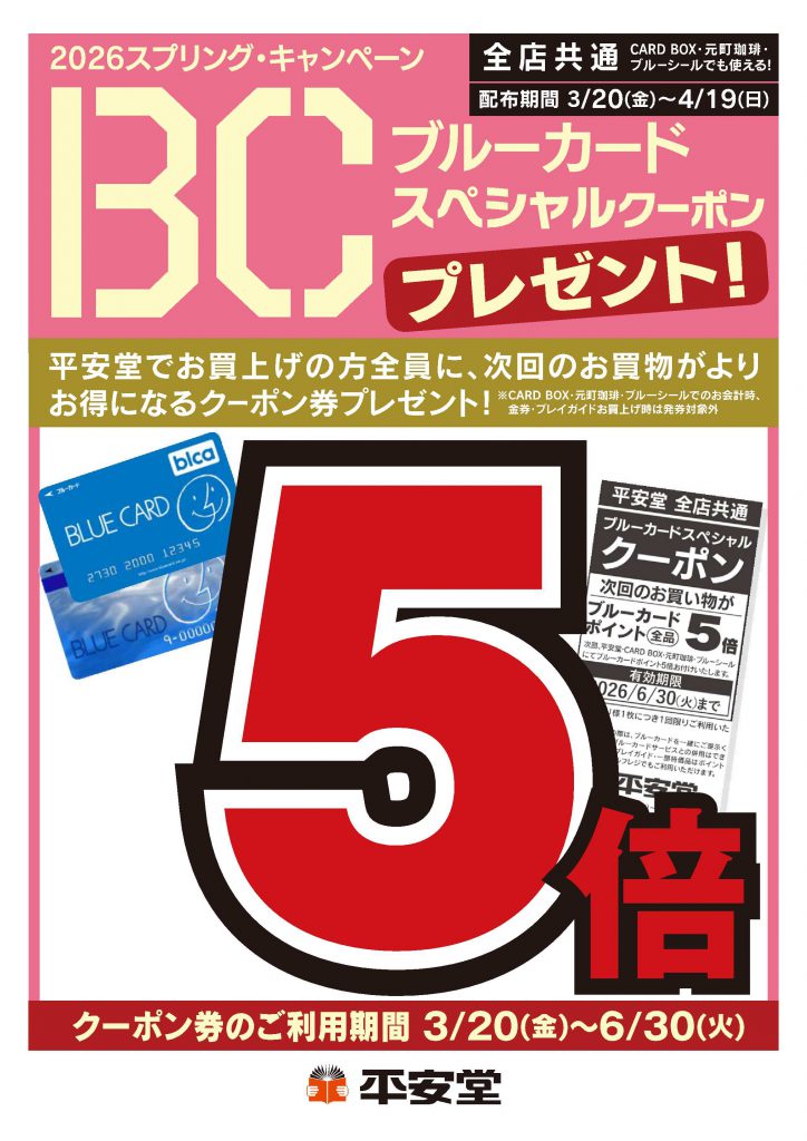 ★平安堂でお買上げのお客様全員に次回のお買い物がよりお得になるブルーカード・スペシャルクーポン券を差し上げております☺