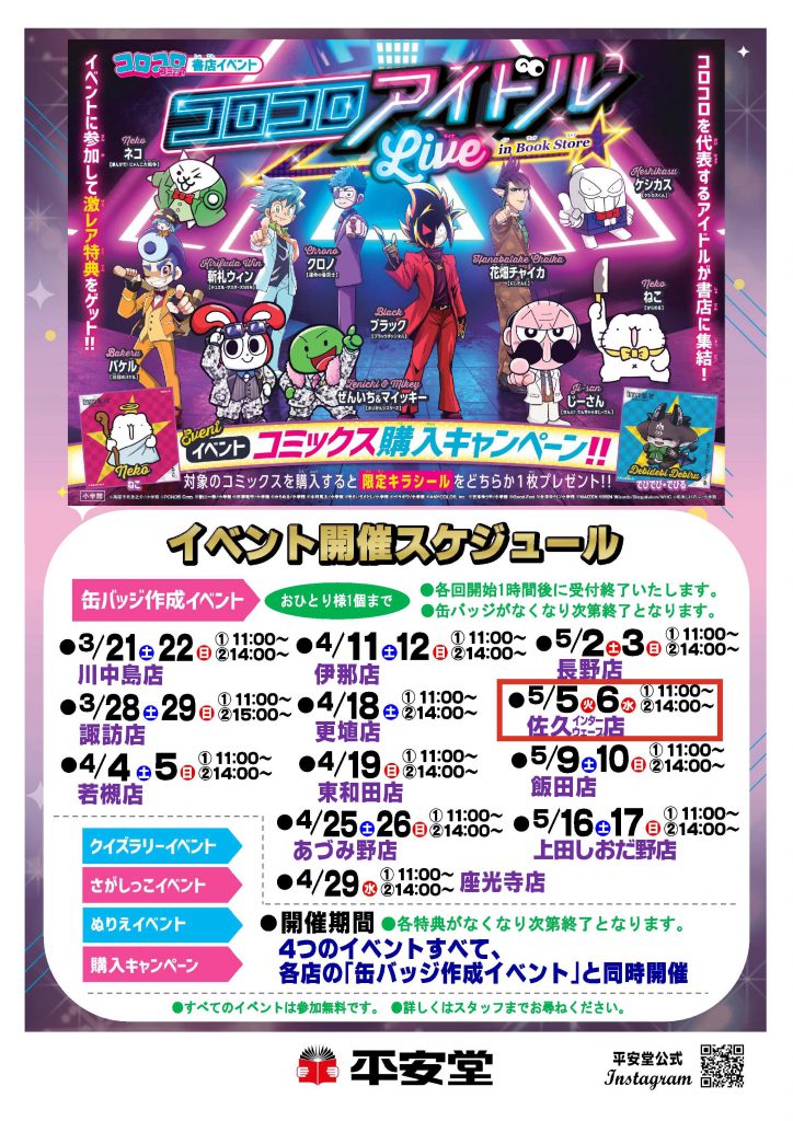 ★コロコロを代表するアイドルが書店に集結❣イベントに参加して激レア特典をゲットしよう👍対象のコミックス購入で限定キラシール1枚プレゼント❣❣