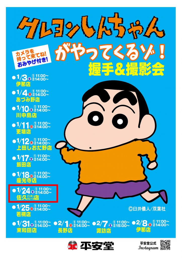 2026年1月24日☺大人気‼クレヨンしんちゃんがやってくるゾ!!握手&撮影会📷